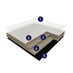Underlayer with self-adhesive surface for a loose ay installation of LVT dry back and to achieve up to 16 dB acoustic insulation :
