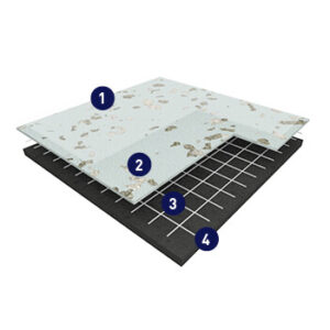 Gerflor’s Premium Compact is a multilayered calendered and pressed resilient sheet flooring with zero filler for outstanding abrasion and scratch resistance. It has a 1mm thick pure vinyl wear layer with very densely pressed color chips within the entire thickness and a matte finish. The fiberglass grid and compact backing provides durable two dimensional stability and superior traffic resistance to heavy rolling loads.
